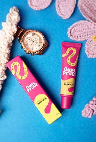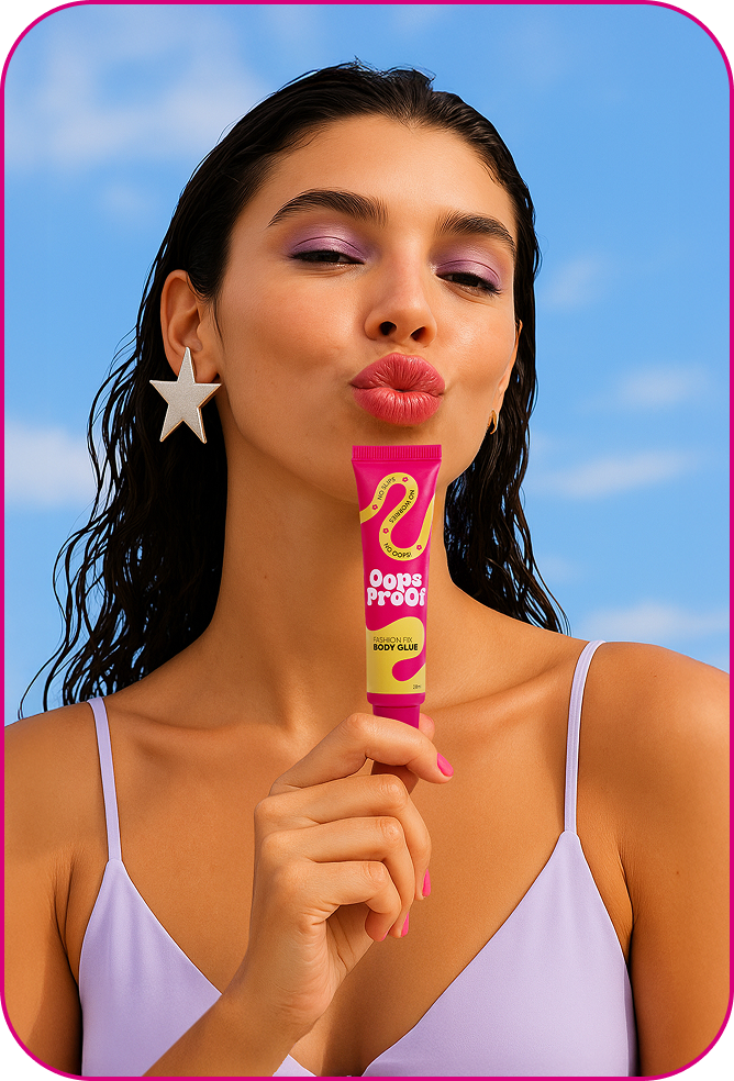 Clear, mess-free glue that keeps your outfit exactly where you want it—secure, skin-safe, and stress-free.No tape. No slips. No second-guessing.